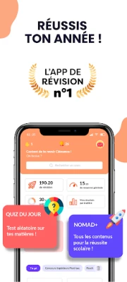 Atklājiet revolūciju mācībās ar mūsu inovatīvo Nomad'IA funkciju! Vienkārši nofotografējiet savas lekcijas vai mācību materiālus, un Nomad'IA automātiski izveidos jums 100% personalizētu sagatavošanās saturu. Jūs iegūsiet piekļuvi vairāk nekā 20 000 kodolīgiem mini-kursiem un pārskata lapām, kā arī plašai 120 000 laboto jautājumu (QCM) datubāzei visos mācību priekšmetos. Šis saturs ir radīts ar 300 pieredzējušu nacionālās izglītības skolotāju palīdzību, garantējot tā kvalitāti un atbilstību programmai. Ietaupiet laiku, mācoties efektīvi un saglabājiet motivāciju visu gadu!