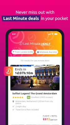 lastminute.com pārvērš sapņu brīvdienas taustāmā realitātē. Atklājiet ekskluzīvus ceļojumu un atpūtas piedāvājumus un sāciet atskaiti līdz jūsu ideālajai atpūtai jau šodien. No brīža, kad sākat plānot, līdz atgriešanās mājās, lastminute.com nodrošina pilnīgu un bezrūpīgu pieredzi, padarot ceļojuma organizēšanu vienkāršu un patīkamu. Izmantojot jaunākās funkcijas, atrast un rezervēt savu nākamo piedzīvojumu ir vieglāk nekā jebkad.