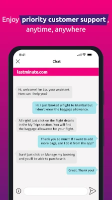 lastminute.com ne tikai palīdz jums atrast ideālo ceļojumu, bet arī organizē visu nepieciešamo. Pieteikšanās jūsu kontā nodrošina ātrāku rezervēšanu un piekļuvi vēl labākām cenām. Visi jūsu ceļojuma dati – lidojuma informācija, viesnīcu adreses, rezervācijas detaļas un pat iekāpšanas kartes – ir ērti pieejami vienuviet. Turklāt varat saglabāt savu ceļojuma biedru datus, lai nākamās rezervācijas būtu vēl ātrākas. Pievienojiet nepieciešamās ekstras un papildinājumus, lai jūsu brīvdienas būtu patiesi nevainojamas. Izbaudiet nepārtrauktu piekļuvi visai svarīgākajai informācijai, nodrošinot mierīgu un bezstresa atpūtu.