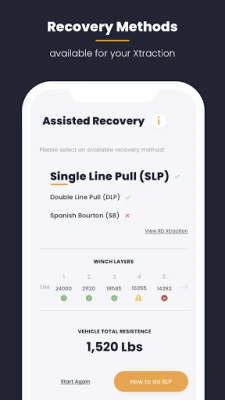 Lietotne piedāvā daudz vairāk nekā tikai aprēķinus. Tā sniedz detalizētas takelāžas rekomendācijas, kas balstītas uz aprēķināto kopējo pretestību, palīdzot jums izvēlēties pareizo aprīkojumu. Ja vinča nav pieejama, nav jāuztraucas! Aplikācija iesaka arī alternatīvas, piemēram, "Vilces izvilkšanas" un "Inerces izvilkšanas" iespējas, ja tās ir piemērotas konkrētajai situācijai. "Inerces izvilkšanas" gadījumā tiek norādīts pat aptuvenais maksimālais ātrums, lai veiksmīgi izmantotu kinētiskās enerģijas atgūšanas trosi, nodrošinot vispusīgu pieeju jebkurai atgūšanas misijai.